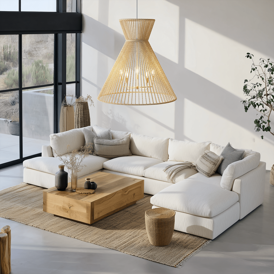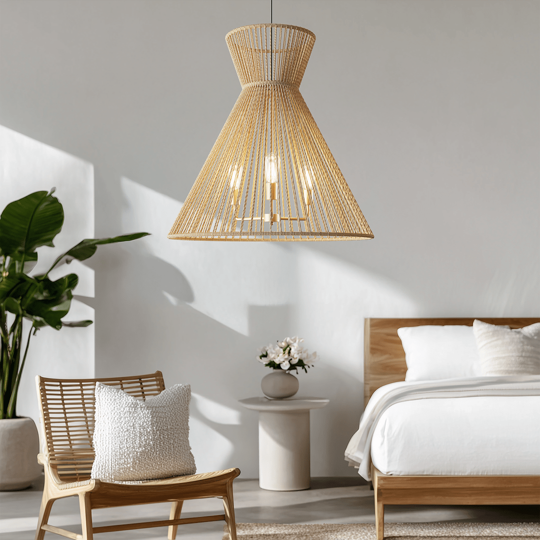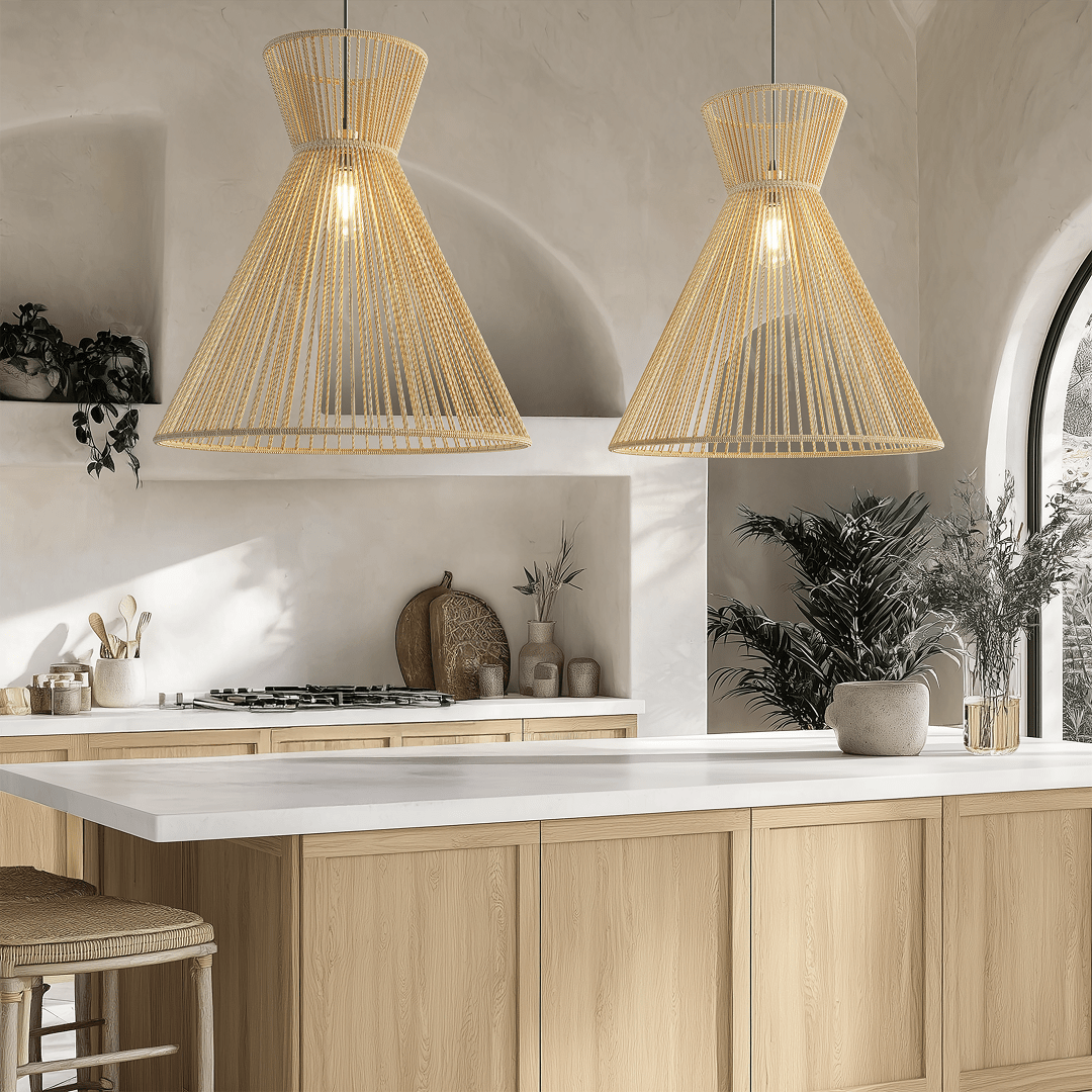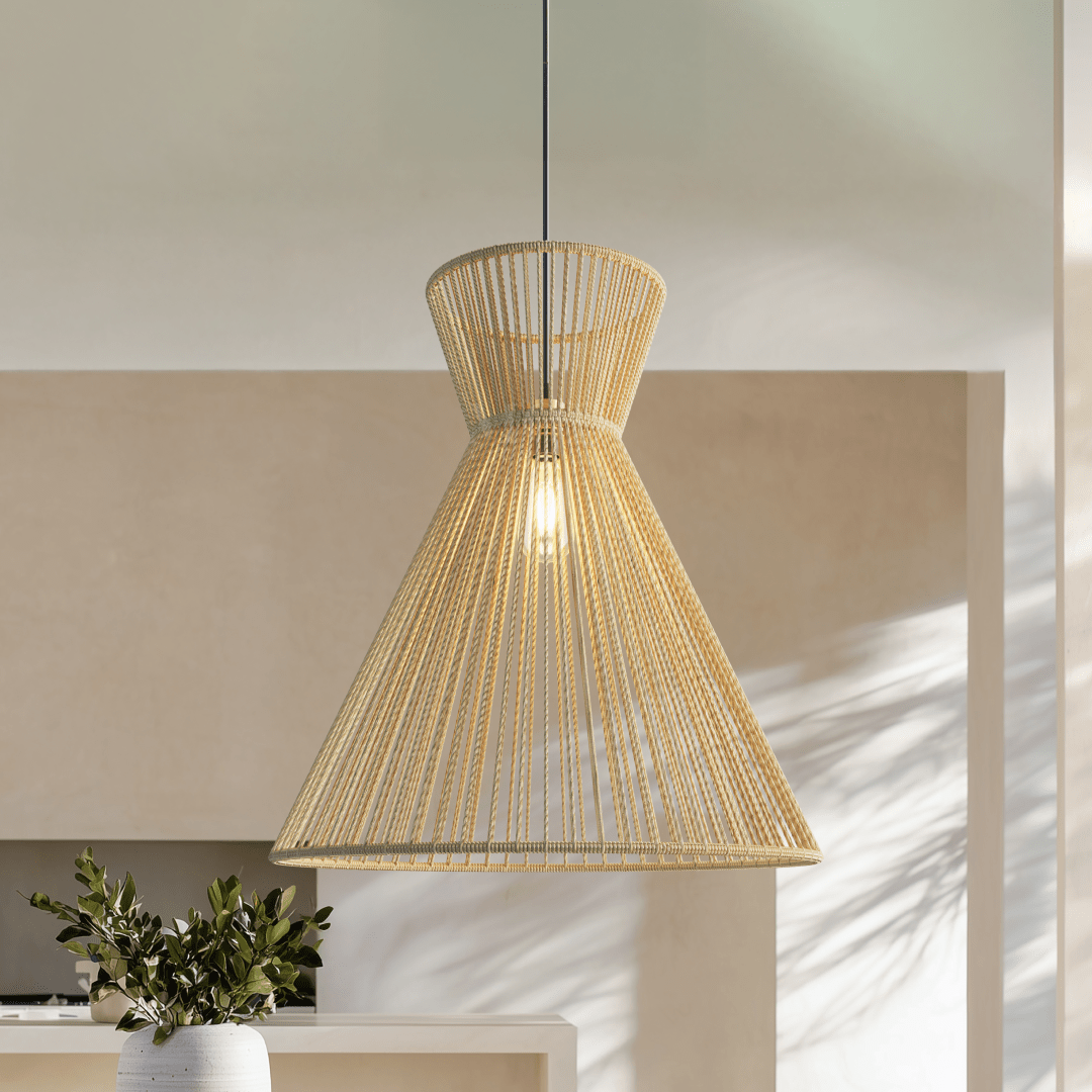 Crafted with hand-knitted hemp rope and solid brass, Isla brings organic texture and modern boho ease to any space. Its open, sculptural form lets light breathe—creating a warm, radiant glow.